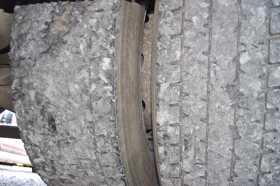 Foto: S takšnimi pnevmatikami je slovenski tovornjakar ogrožal sebe in druge